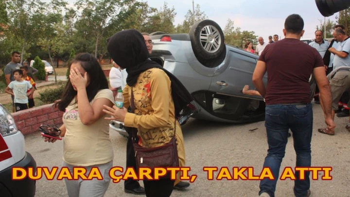Alınan bilgiye göre, Cavit Yılkın (27) yönetimindeki 22 FJ 933 plakalı otomobil, Nazar Sokak'a saparken sürücüsünün direksiyon hakimiyetini kaybetmesi sonucu evin bahçe duvarına çarparak takla attı.