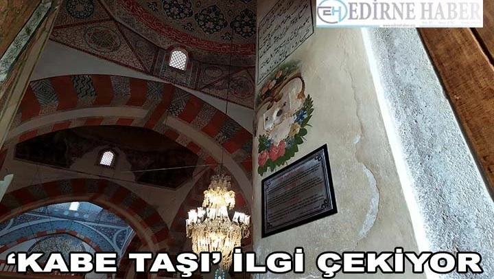 Edirne'nin abidevi eserlerinden Eski Cami'de, Kabe'den bir parça olan Rükn-ü Yemani (Kabe taşı) ziyaretçilerin ilgisini çekiyor.
