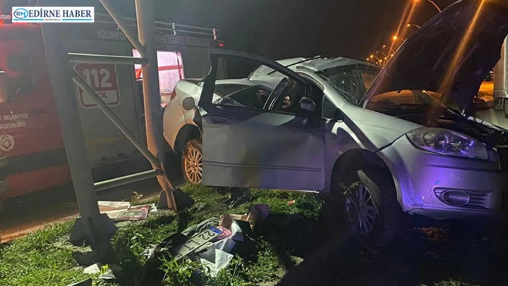 Edirne'nin Uzunköprü ilçesinde direğe çarpan otomobilin sürücüsü hayatını kaybetti.