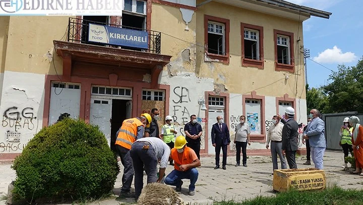 Kırklareli Valisi Osman Bilgin, gar binasındaki restorasyonu inceledi, çalışmalar hakkında bilgi aldı.