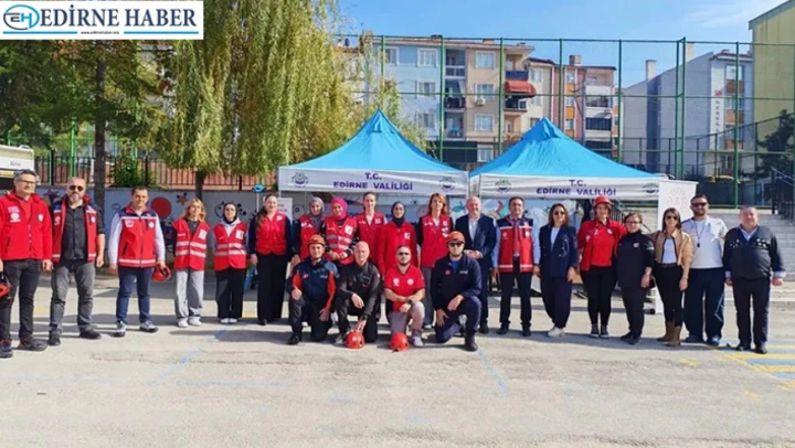 Edirne'de Genç Kızılay gönüllüleri, İsmail Güner Ortaokulu'nda gerçekleştirilen Acil Durum Tahliye Tatbikatı'na katılarak afet bilincine dikkat çekti.