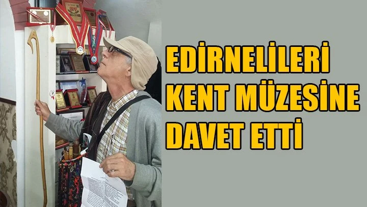 Elinde konuşma metnini yazdığı davetiyesiyle dükkanları gezen Gegeli Hasan Yörükbayır, Edirnelileri Kent Müzesini ziyarete davet etti.