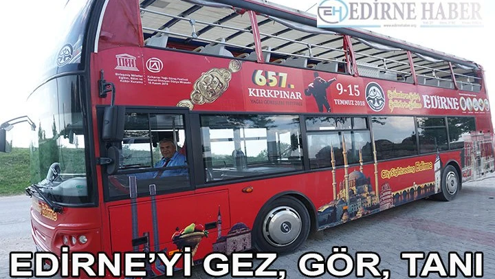 Kırkpınar'da ilk kez kullanıma açılan ve Edirne'nin turizmine katkı sağlaması amaçlanarak hizmete sunulan panoramik şehir turu otobüsüne ilgi devam ediyor.
