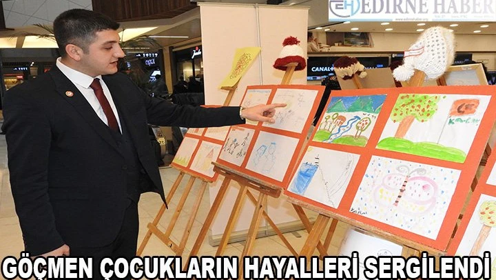 Edirne'de ‘Uluslararası Göçmenler Günü' dolayısıyla bir alışveriş merkezinde göçmen çocukların hayallerinin anlatıldığı resimler ve el emeği örgülerden oluşan eserler sergilendi.