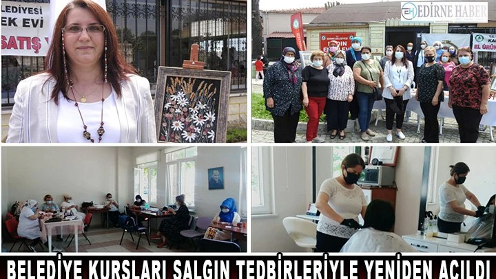 Edirne Belediye ve Halk Eğitim Kursları 1 Haziran itibariyle yeniden açıldı. Çoğunluğu ev hanımlarından oluşan kursiyerler, salgın tedbirleri altında kurslara devam ediyor.