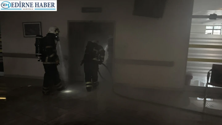 Edirne Sultan 1. Murat Devlet Hastanesinde çıkan yangına müdahale ediliyor.