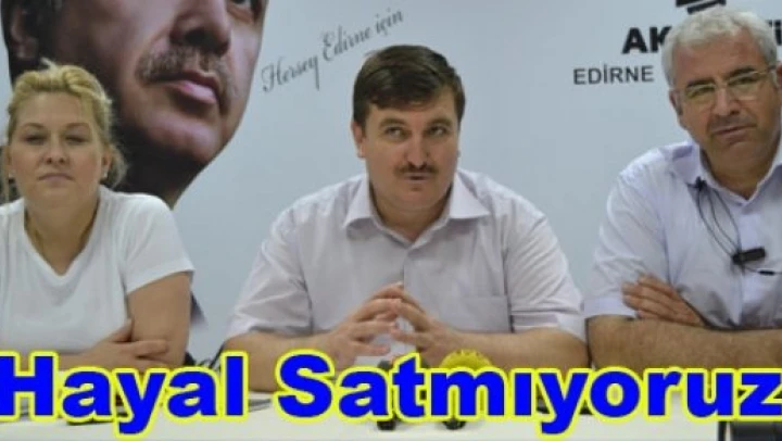 AK Parti Edirne İl Başkanı Müjdat Kahve, Edirne Belediye Başkanı Hamdi Sedefçi'nin hayata geçiremediği projelerle Edirne halkına hayal satmaya devam ettiğini ileri sürerek "Biz Edirne halkına hayal satmıyoruz, satmayacağız" dedi.