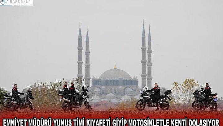 Edirne Emniyet Müdürü Mustafa Alçalar'ı, yunus timi üniformasıyla kullandığı motosikletin üzerinde görenler hem şaşırıyor hem de sohbet imkanı buldukları için mutlu oluyor.