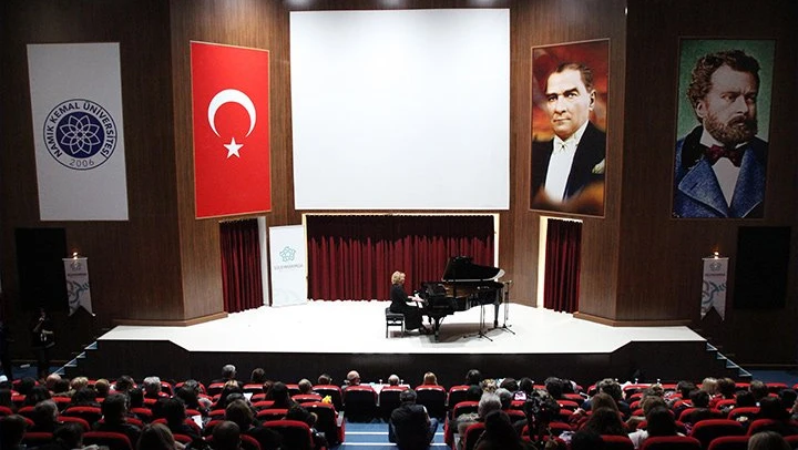 Namık Kemal Üniversitesi (NKÜ) Rektörlük konferans salonunda düzenlenen konserde Gülsin Onay; Schumann, Beethoven, Bartholdy, Federic Chopin ve Ahmet Adnan Saygun'un eserlerini icra etti.