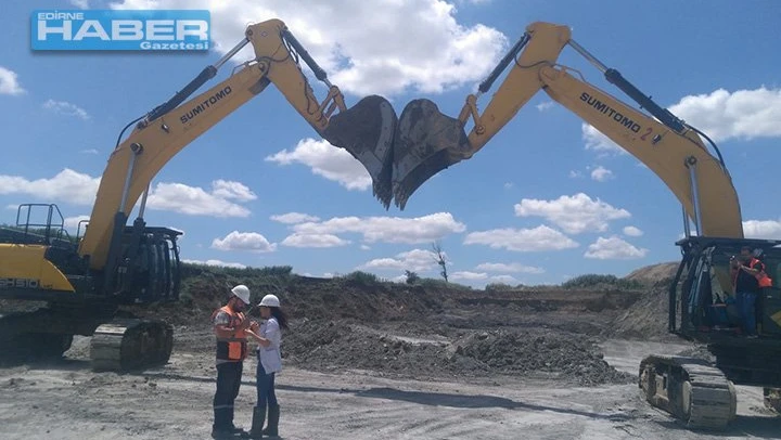 Tekirdağ'ın Malkara ilçesinde maden mühendisi Emre Arslan, kız arkadaşına maden sahasında kalp şeklinde konumlandırılan iki iş makinesinin altında evlenme teklif etti.
