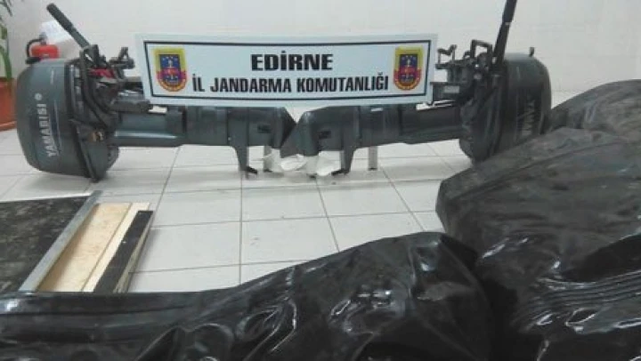 Verilen bilgiye göre, İpsala-Yenikarpuzlu beldesi Meriç nehri kenarında, 13 Ocak 2016 Çarşamba günü saat 17.00 sıralarında, Edirne İl Jandarma Komutanlığı ekipleri tarafından icra edilen önleyici kolluk faaliyeti esnasında, 22 FP ….. plakalı traktörde yapılan kontrolde; gümrük işlemlerine tabi tutulmaksızın yasadışı yollarla ülkeye sokulduğu tespit edilen ve göçmen kaçakçılığı olaylarında kullanılacağı değerlendirilen (2) adet şişme bot ve bu botlara ait (2) adet motor ele geçirildi. Şüpheliler U.K. ve G.B. isimli şahıslar, Cumhuriyet Savcısının talimatları doğrultusunda ifadelerinin alınmasını müteakip alınarak serbest bırakıldı.