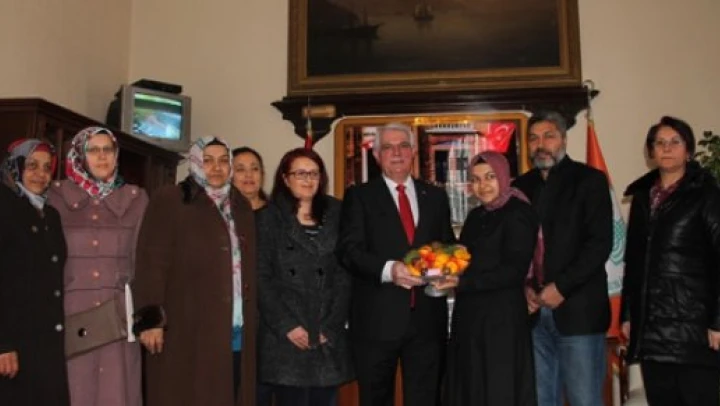 Edirne Kadın Gelişim Merkezleri Yardımlaşma ve Dayanışma Derneği'nden kadınlar, Edirne Belediye Başkanı Hamdi Sedefçi'yi makamında ziyaret etti.