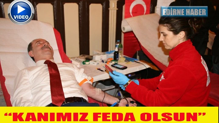 Edirne Belediye Başkanı Recep Gürkan, ' Belediye personeli olarak Afrin'de ülkemiz ve geleceğimiz için savaşan kahraman Mehmetçiğimiz için kan veriyoruz. Kanımız Mehmetçiğe feda olsun' dedi.