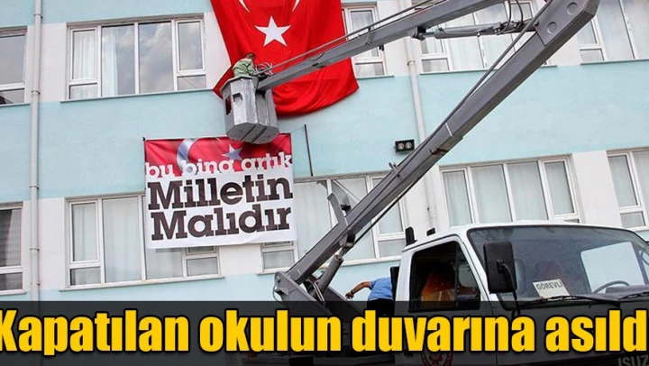 Konya'nın Seydişehir ilçesinde FETÖ'nün darbe girişiminin ardından kapatılan okulun üzerine, "Bu bina artık milletin malıdır" yazılı afiş asıldı.
