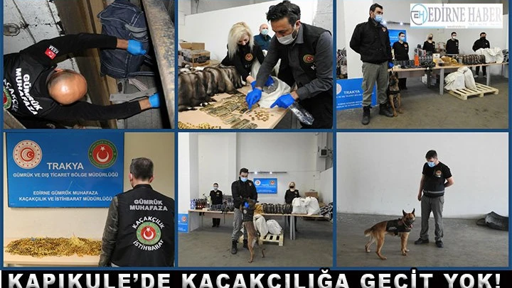 Ticaret Bakanlığı Gümrük Muhafaza ekiplerince Kapıkule Gümrük Kapısı'nda son birkaç günde gerçekleştirilen operasyonlarda, uyuşturucudan elektronik eşyalara, oto yedek parçasından tütün mamullerine, hayvan kürklerinden külçe altına ve tarihi eserlere kadar binlerce kaçak ürün ülkeye girmeden ele geçirildi.