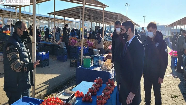 Lalapaşa Kaymakamı Muhammet Çiftçi, ilçede perşembe günleri kurulan sebze meyve pazarını ziyaret etti.