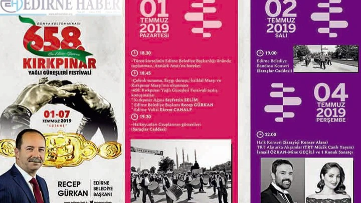 Edirne Belediyesi'nce 1-7 Temmuz tarihlerinde gerçekleştirilecek 658. Kırkpınar Yağlı Güreşleri ve Kültür Haftası etkinlikleri ile ilgili program belirlendi.