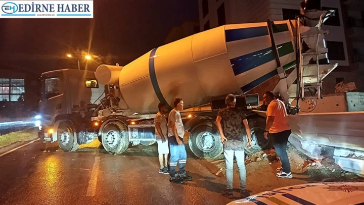 Edirne'de Fatih Mahallesi'nde bulunan olimpik yüzme havuzu karşısındaki yolda kaza yapan beton mikseri kayarak inşaatın koruma demirlerine girdi. Edinilen bilgiye göre, hastane çıkış rampasında ilerleyen beton mikseri, zeminde meydana gelen kayma nedeniyle kontrolden çıkarak yol kenarındaki inşaat alanının koruma demirlerine girdi. Araç sıkıştığı yerden çıkamayınca yol trafiğe kapandı.