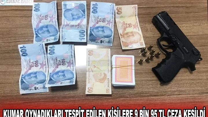 Keşan'da kumar oynadıkları belirlenen 5 kişiye 9 bin 95 lira para cezası kesildi.
