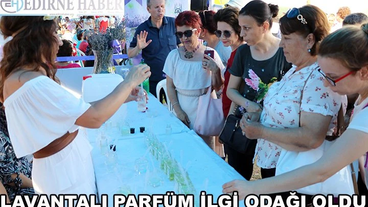 Edirne Lavanta Tarla Günleri etkinliklerine katılan ziyaretçiler, bir firmanın standında lavanta esanslı parfüm yaptı.