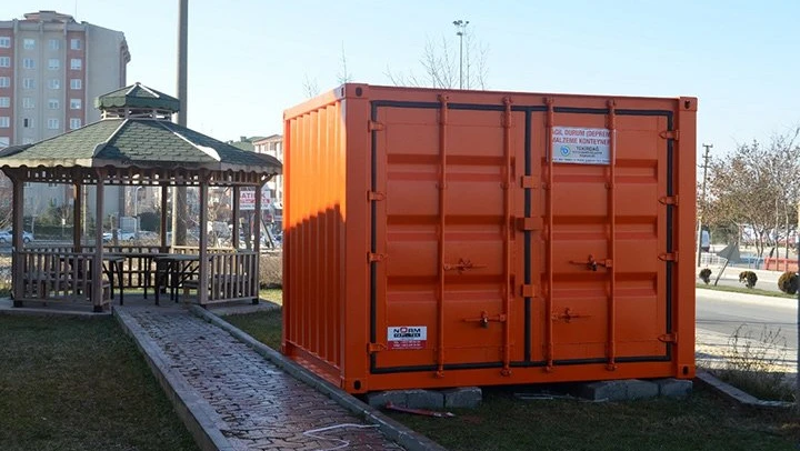 Tekirdağ Büyükşehir Belediyesi Deprem Risk Yönetimi ve Kentsel İyileştirme Dairesi Başkanlığı Afet Şube Müdürlüğü tarafından olası bir afet durumuna karşı ilçelerde belirlenen noktalara acil durum malzeme konteynerleri yerleştirildi.