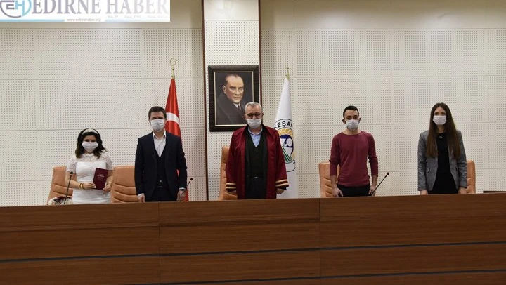 Keşan Belediyesine başvuran Gözde Çalık ve İlker Keskin'in nikahları, koronavirüs hassasiyetiyle kıyıldı.