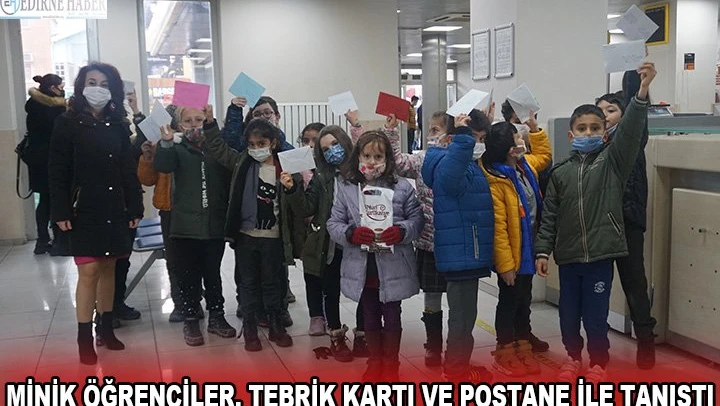 Sevdikleri ve arkadaşları için hazırladıkları yılbaşı tebrik kartlarını postane aracılığı ile gönderen Edirne Şehit Asım İlkokulu öğrencileri, ayrıca burada yapılan diğer işlemleri de öğrenmenin mutluluğunu yaşadı.