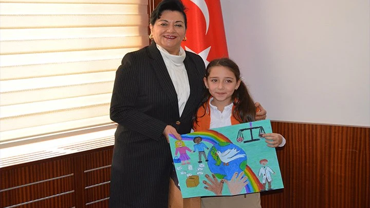 Vali Esengül Civelek, İnsan Hakları Günü dolayısıyla ilköğretim ve lise öğrencileri arasında düzenlenen kompozisyon, şiir ve resim yarışmalarında dereceye giren öğrencilere hediyeler verdi.