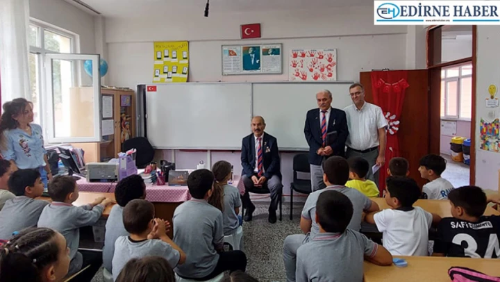 Edirne Şehit Asım İlkokulu'nda öğrenciler, tarihle buluşturan özel bir etkinlik gerçekleştirdi. Okulun 4. sınıf öğrencileri, öğretmenlerinin rehberliğinde Muharip Gaziler Derneği Edirne Şubesi üyeleri Fevzi Demir ve İbrahim Aksal'ı okul gazetesi çalışmaları kapsamında misafir etti.