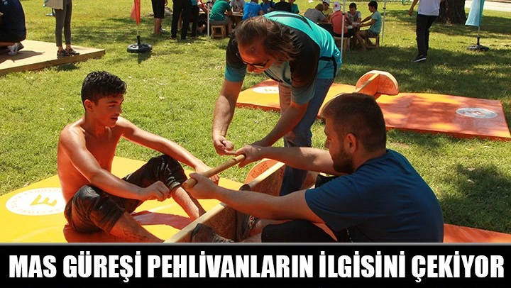 656. Tarihi Kırkpınar Yağlı Güreşleri'nin devam ettiği Sarayiçi'nde tanıtılan mas güreşi de pehlivanların ilgisini çekiyor.