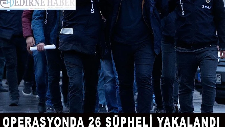 Edirne merkezli 11Â ilde Fetullahçı Terör Örgütü'nün (FETÖ) mahrem yapılanmalarına yönelik düzenlenen operasyonda 26 şüpheli yakalandı.