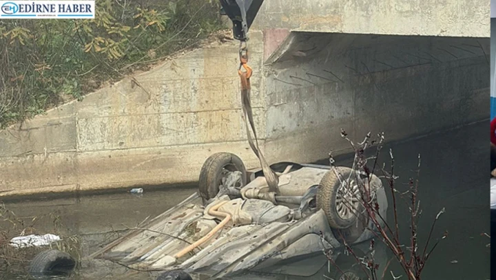 Edirne'nin Üyüklütatar köyünde bir otomobil dereye uçtu.