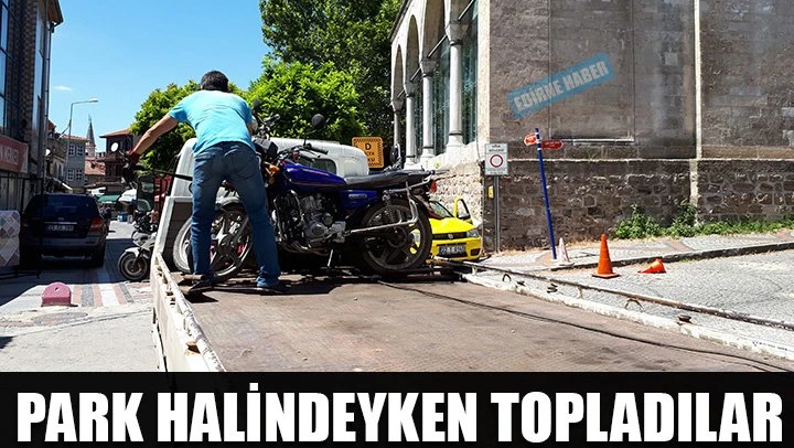 Edirne İl Emniyet Müdürlüğü Şehir içi ekipleri, park halinde olsa dahi plakasız motosikletleri toplamaya başladı.