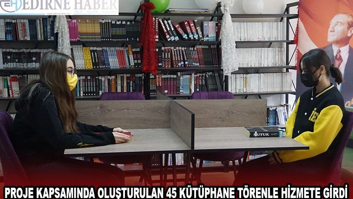 Edirne'de de hayata geçirilen kütüphanesiz okul kalmayacak projesi kapsamında oluşturulan 45 kütüphane, İlhami Ertem Lisesi'nde düzenlenen törenle hizmete girdi.