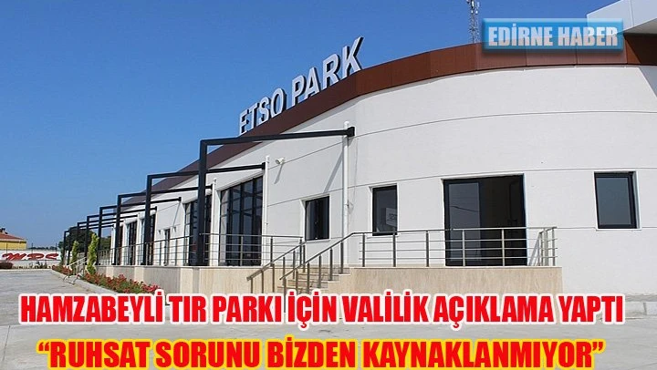 ETSO tarafından yapılan ve ruhsat verilmediği için hizmete başlayamadığı belirtilen Hamzabeyli Tır Parkı ile ilgili açıklama Edirne Valiliğinden geldi. Edirne Valiliği yaptığı açıklamada, ruhsat konusunda tüm desteklerin verildiğini belirtti. Edirne Valiliğinden yapılan açıklamada, “07.02.2018 tarihinde de konuyla ilgili Müdürlük tarafından yapı Kullanma Belgesi düzenlenmiş olup ilgilisine, yapı sahibi, müteahhit ve Fenni Mesullerin belgeyi imzalamaları için İdaremize gelmeleri hususunda bilgi verilmiştir. İdaremize Harita Mühendisi haricinde kimse imza için gelmemiştir.” denildi.