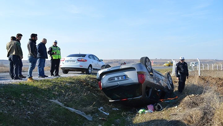Alınan bilgiye göre, Cemalettin Egeroğlu yönetimindeki 22 KL 098 plakalı otomobil, Tatarköy yakınlarında sürücünün direksiyon hakimiyetini kaybetmesi sonucu şarampole devrildi.