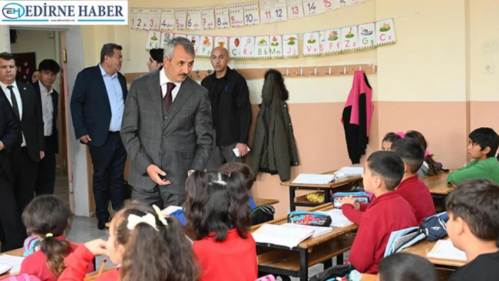 Edirne Valisi Yunus Sezer, Keşan Şehit Polis Ahmet Can İlkokulu'nda öğrencilerle bir araya geldi.