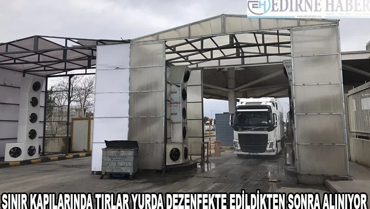 Avrupa'ya açılan sınır kapılarından Türkiye'ye giren tırlar dezenfekte edilerek alınıyor.