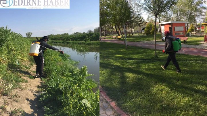 "Sivrisinek ve her türlü haşarat ile mücadele kapsamında Park Bahçeler Müdürlüğüne ekiplerimiz çalışmalarını yoğunlaştırdı. Bu kapsamda ekipler tarafından Doğan dere, Havsa Deresi, Sinit Göl, hayvan pazarı, mezarlıklar ve yeşil alanlarda larvasit ilaçlaması yapıldı."