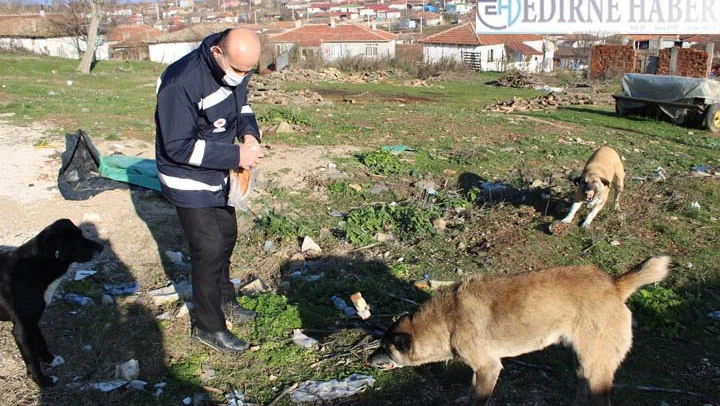 Edirne Çevre ve Şehircilik Müdürlüğü ekipleri, yeni tip koronavirüs (Kovid-19) tedbirleri kapsamında uygulanan sokak kısıtlamalarından dolayı yiyecek bulmakta sıkıntı çeken sokak hayvanlarını besliyor.