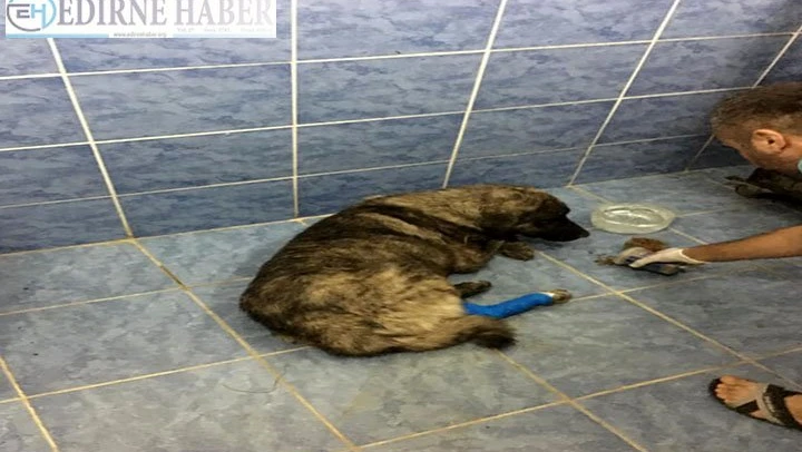 Ayağı kırılan ve vücudunun farklı yerlerinden yaralanan köpek, Edirne Belediyesi Sokak Hayvanları Bakımevi'nde tedavi altına alındı.