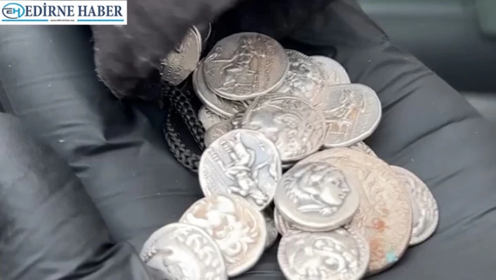 Edirne'de, tarihi eser niteliğindeki sikkeleri yurt dışına kaçırmaya çalışırken yakalanan 2 zanlı tutuklandı.