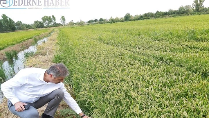 Edirne Tarım ve Orman Müdürü Atilla Bayazıt, çeltik ekili tarlalarda incelemede bulundu.