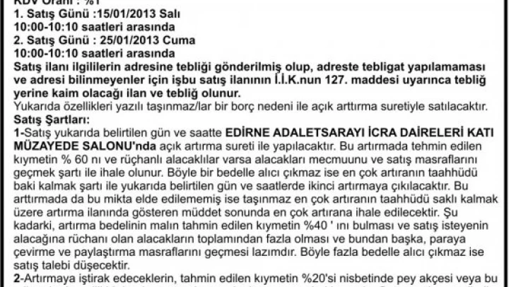 Haberler İlanlar Taşınmazın Açık artırma İlanı Taşınmazın Açık artırma İlanı Edirne ilinde Merkez Kavgaz mahallesinde PAYLAŞ 06.12.2012 09:56 Güncelleme: 06.12.2012 09:56 TAKİP ET