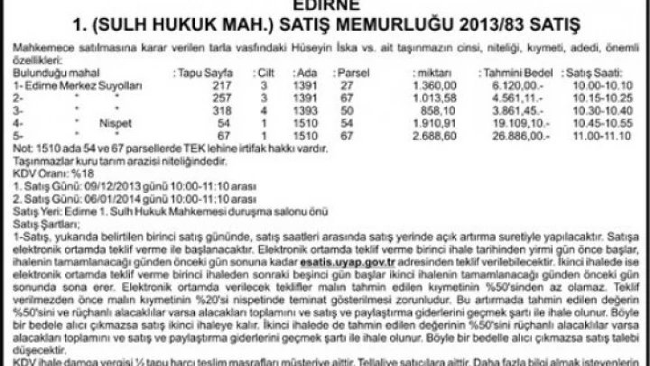 T.C. Edirne 1. Sulh Hukuk Mah. Satış Memurluğu