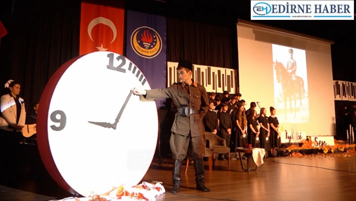 TED Edirne Koleji'nde gerçekleştirilen anma etkinlikleri kolej girişindeki dev duvar saatinin 09.05'i göstermesiyle başladı. Saat 09.05'te çalınan siren sesi ile kolejdeki Türk bayrakları yarıya indirildi, saygı duruşunda bulunuldu ve hep bir ağızdan İstiklal Marşı okundu. Öğrenciler kolej bahçesindeki Atatürk Anıtı'na çiçekler bıraktı.