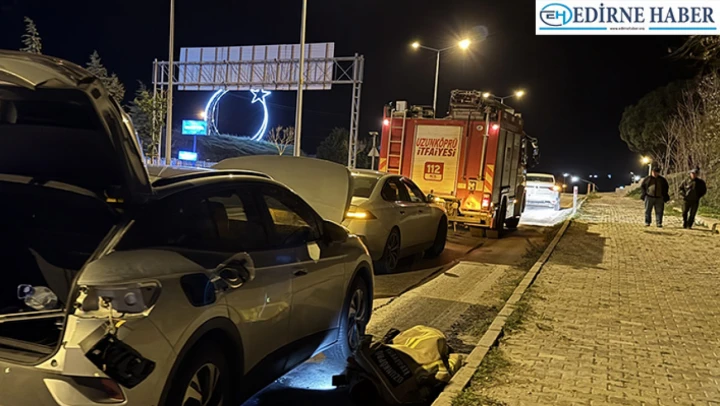 Edirne'nin Uzunköprü ilçesinde elektrikli otomobil tırdan düşen demir parçasına çarparak hasar gördü.