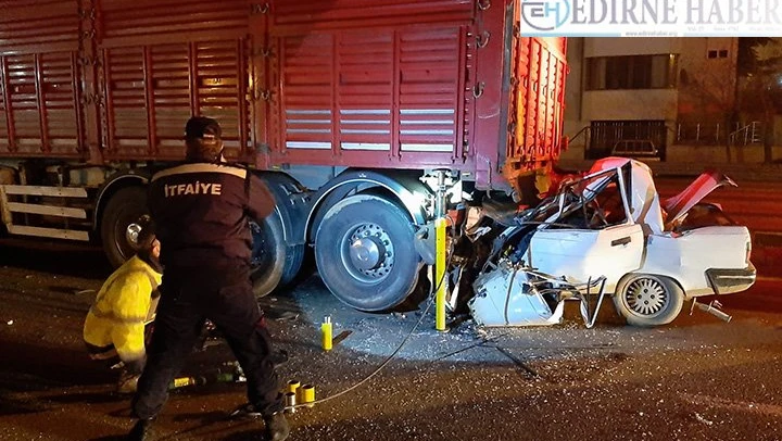 Edirne'nin Keşan ilçesinde tırla çarpışan otomobilin sürücüsü hayatını kaybetti.