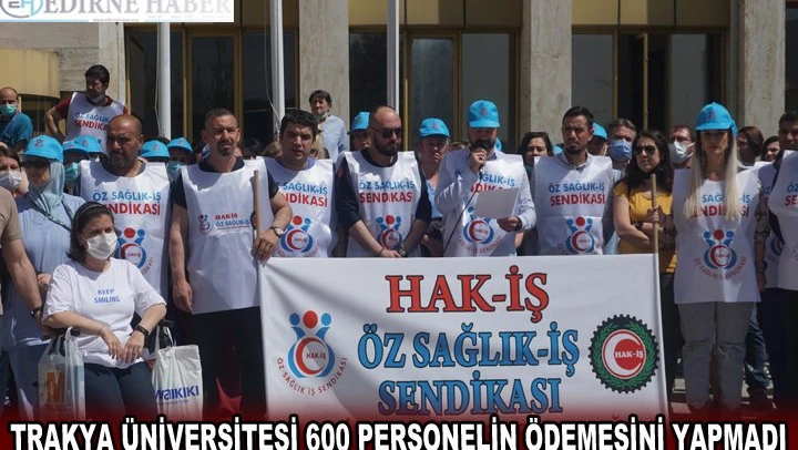 Edirne Trakya Üniversitesi Rektörlüğü ve Öz Sağlık-İş Sendikası arasında toplam bin işçiyi kapsayan toplu iş sözleşmesi imzalanmıştı. Sözleşme imzalanmasına rağmen yaklaşık 600 personelin ödemelerinin halen yapılmamış olması çalışanları isyan ettirdi.