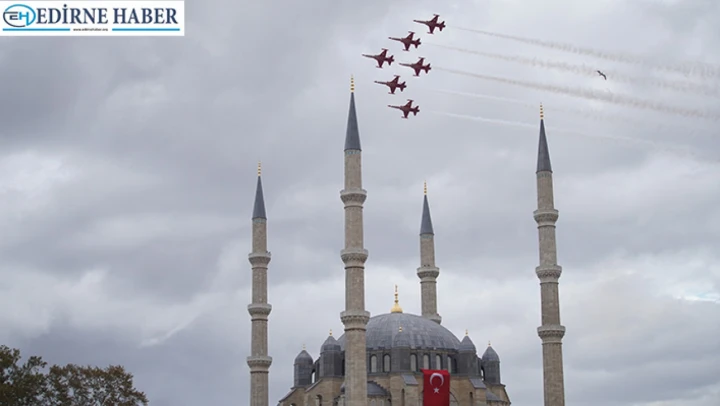 Edirne'de Selimiye Meydanı semalarında gösteri gerçekleştiren Türk Hava Kuvvetlerinin akrobasi timi Türk Yıldızları, Edirneliler ve fotoğraf severlerin ilgi odağı oldu.